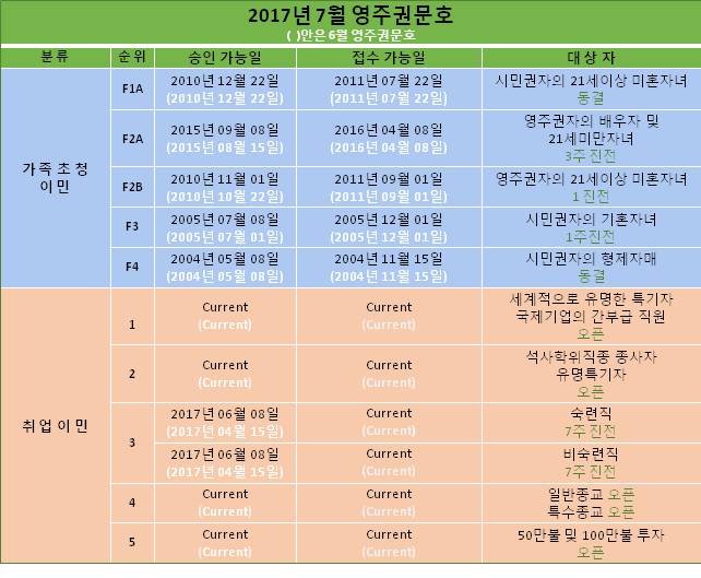 <2017년 7월 영주권 문호>